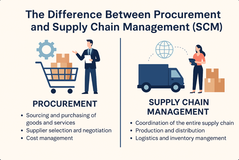 Beschaffung und Supply-Chain-Management (SCM) sind zwei wesentliche Funktionen in jedem Unternehmen, das mit Waren, Dienstleistungen oder der Produktion zu tun hat. Obwohl sie eng miteinander verbunden sind und sich oft überschneiden, erfüllen sie innerhalb des Geschäftsbetriebs unterschiedliche Zwecke. Das Verständnis dieser Unterschiede ist entscheidend für Führungskräfte, Betriebsleiter und Unternehmer, die ihre Effizienz steigern, Kosten senken und stabile Abläufe aufbauen möchten.